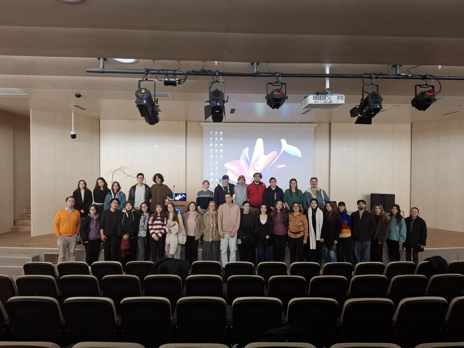 Campus France temsilcisi Fidan Dinç Fransa'daki Eğitim üzerine 9 Aralık 2025'te hibrit bir eğitim gerçekleştirdi. A4 binasındaki konferans salonunda gerçekleşen etkinliğe ana bilim dalımız öğrencileri ve öğretim üyeleri katıldı. Web konferans yöntemiyle etkinliğe katılan Dinç'in sunumuna çok ilgi duyuldu.
